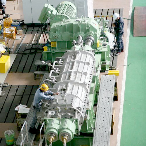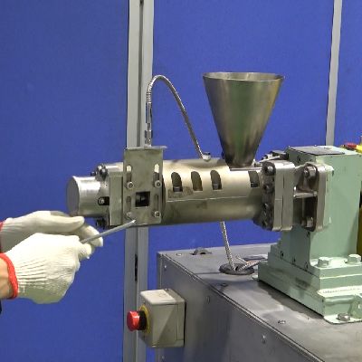 The twin-shaft continuous kneader "KRC Kneader" allows adjustment of processing load and kneading intensity through the following mechanical features. By increasing the kneading load in the pre-mixing step using a small-scale machine, the maintenance frequency of the subsequent large dissolving equipment can be reduced, contributing to lower overall operating costs for the process.