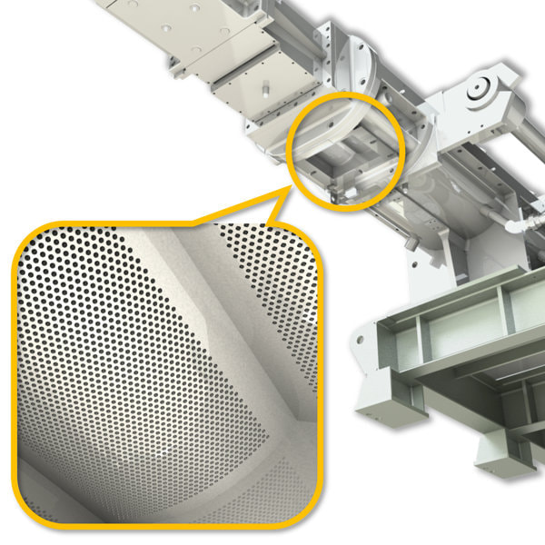 The material is extruded in a noodle-like form by a special outlet nozzle.